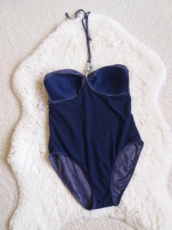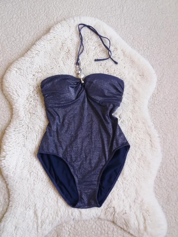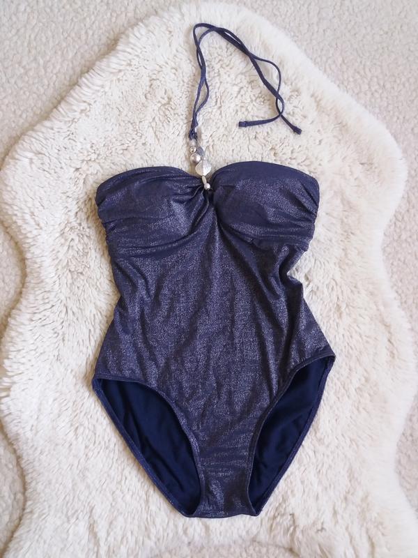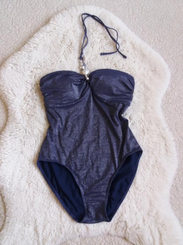 Суцільний купальник бандо з люрексовою ниткою, стан нової речі, але є невеликий нюанс ззаду внизу (фото 8)