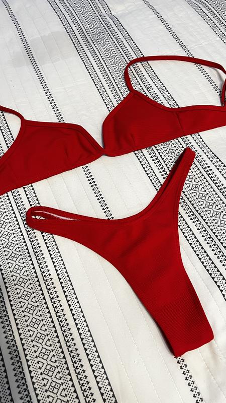 Червоний купальник із зав'язками гарні труси