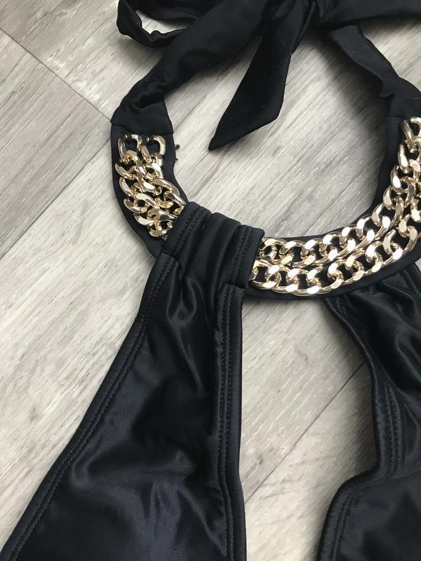 Шикарний новий, в упаковці суцільний купальник з чашками, з ланцюгом чокером river island s-m