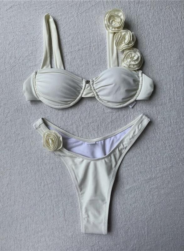 Жіночий роздільний купальник бразильське бікіні з кісточками та об'ємними квітами 3d...