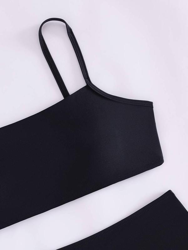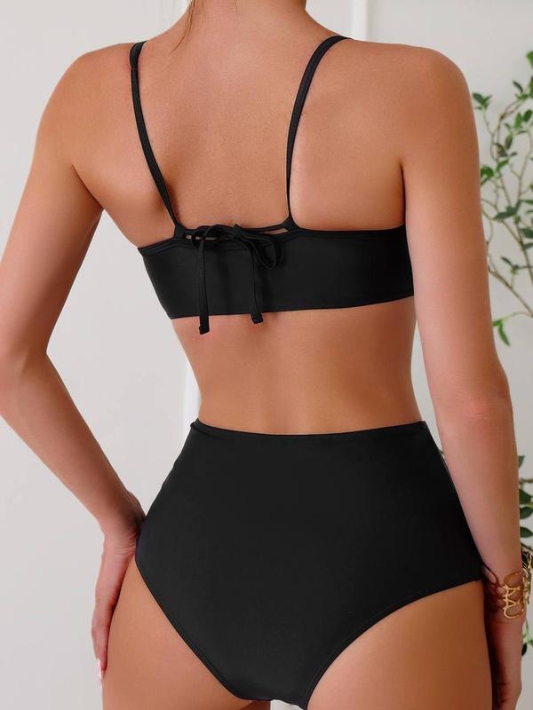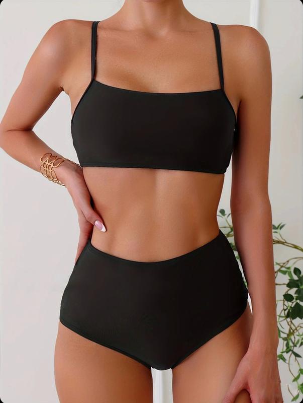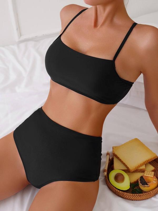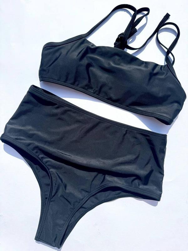 Однотонний роздільний купальник з високими плавками. Топ бандо, з тонкими