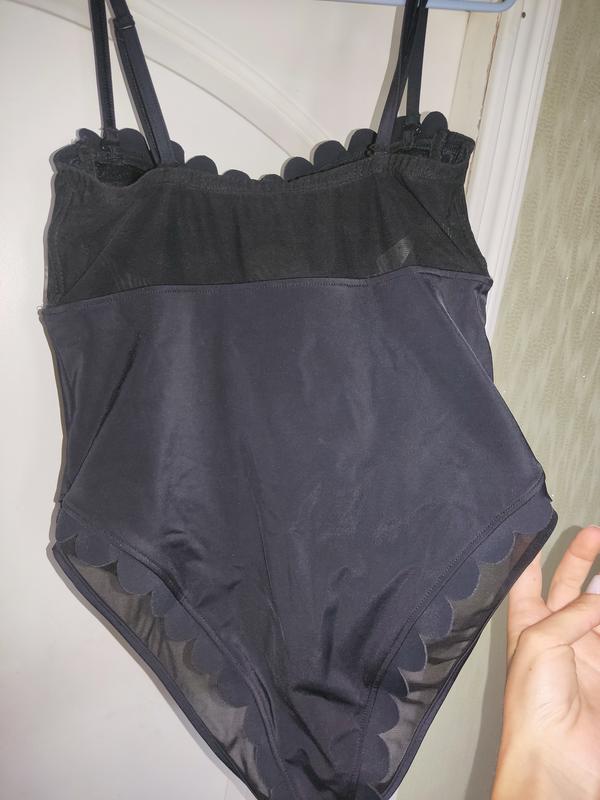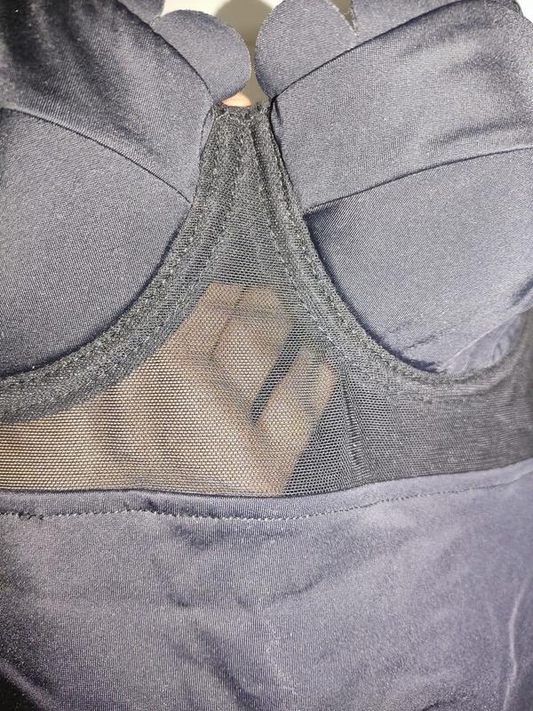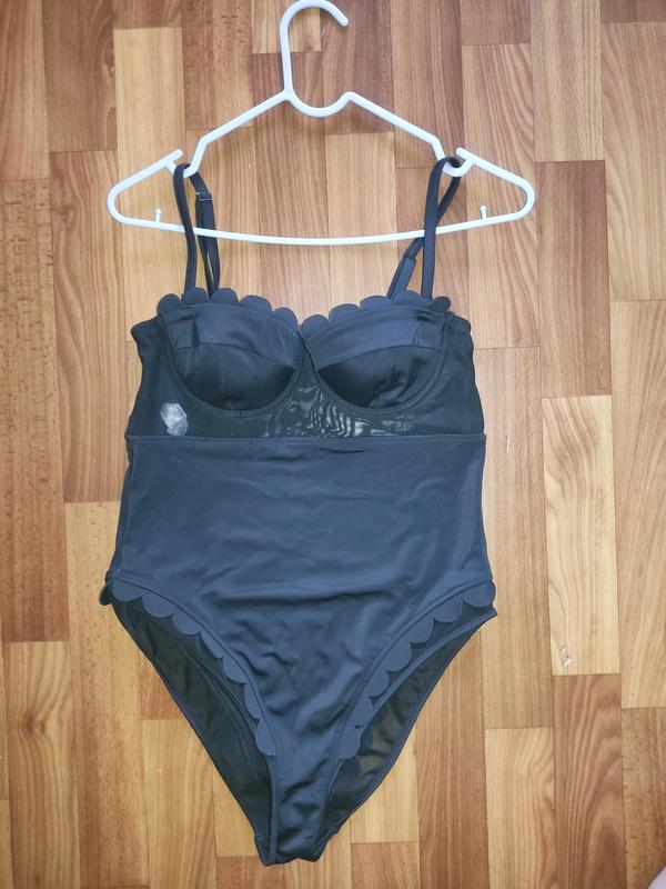 Чорний цільний купальник. Оздоблений сіткою. Шейки знімаються, можна носити без них з відкритими плечима. Є силіконові вставки на грудях - що тримають купальник. Висока посадка на бедрах.Розмір С-МГруди А-В