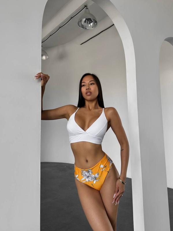 Ваша улюблена модель в новій інтерпретації в улюблених кольорах Купальник відмінно тягнеться, чудово тримає форму, швидко сохне. Ідеальний подовжений топ на поясі під грудьми. По спинці стильне шнурування, м'які поролонові вставки. Плавки високі закриті бікіні утяжка. І найголовніше - подвійна тканина❤️