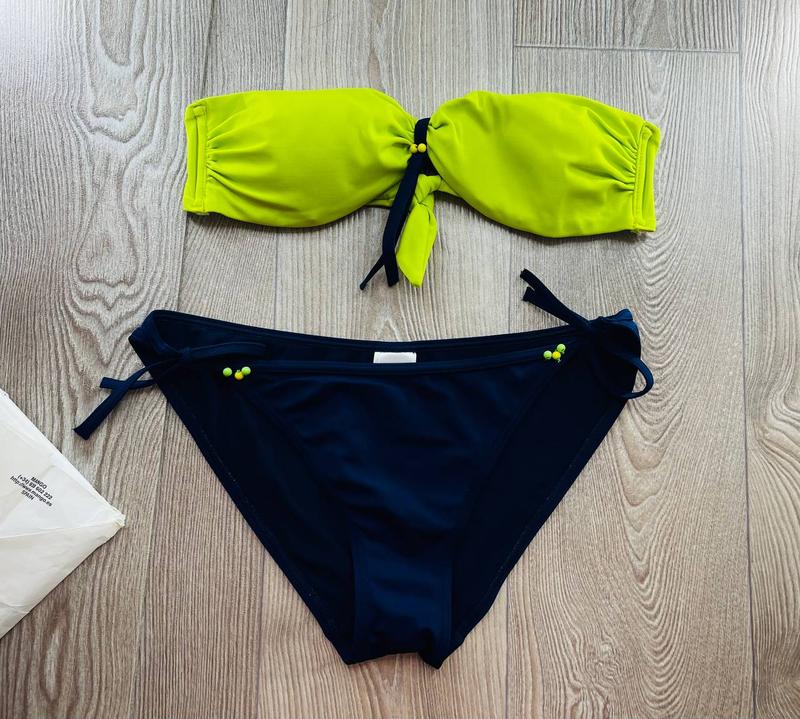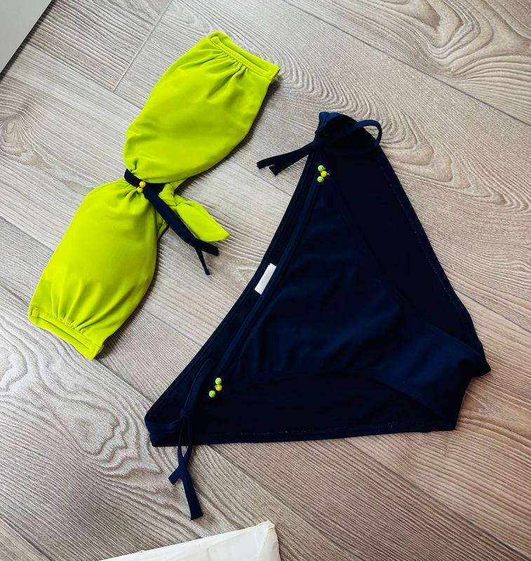 Купальник роздільний з темно-синіми бікіні та салатного кольору ліфом TRIBORD🛍❤️🔥