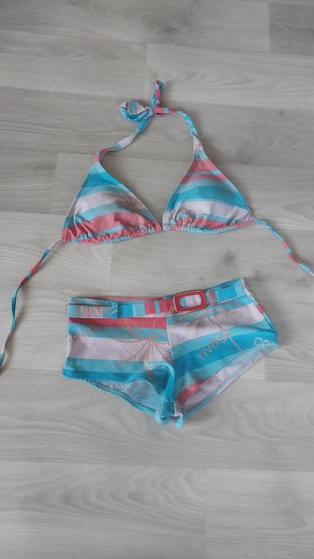 Дуже гарний та зручний купальник. Підійде на розмір XS/S. Груди А/В. Гарний стан, вигорів трішки.