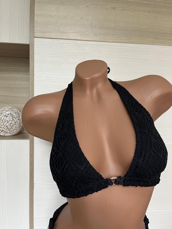 🎁1+1=3 стильний чорний мінімалістичний купальник (верх) з чашками new look, розмір 44 - 46
