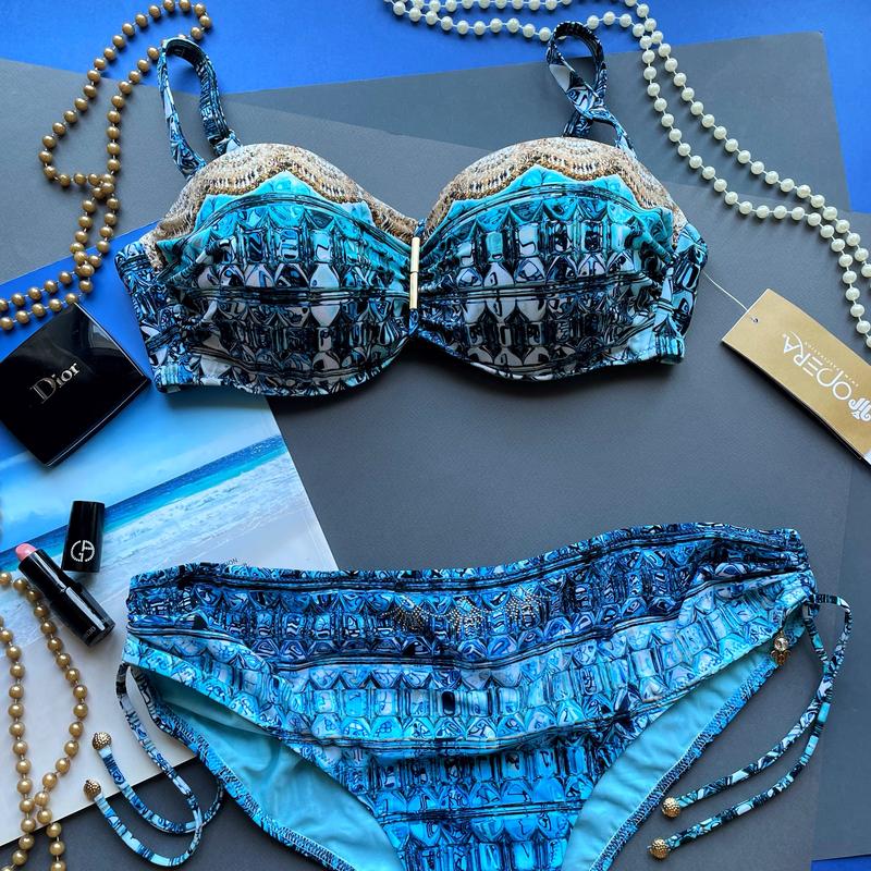 OPERA - німецька марка популярна у всьому світі завдяки своїм пляжним колекціям. При виробництві купальників використовуються ексклюзивні тканини, роблячи їх неповторними. Всі купальники Opera відрізняє бездоганний крій, що дозволяє жінці підкреслити свої достоїнства і приховати недоліки. Порадуйте себе цим бікіні від OPERA. Сучасний акварельний малюнок батіку створює WOW-ефект. Верх виконаний в топ формі бандо . Знімні та регульовані бретелі для зручності.