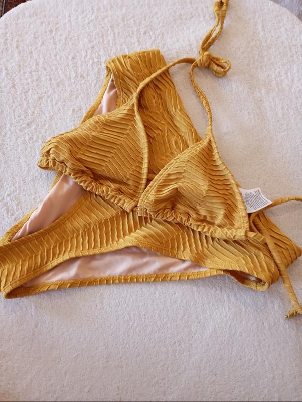 Купальник гірчичного кольору. Розмір M/L. Верх на зав'язках, трусики з високою посадкою. Без видимих дефектів. Можлива знижка