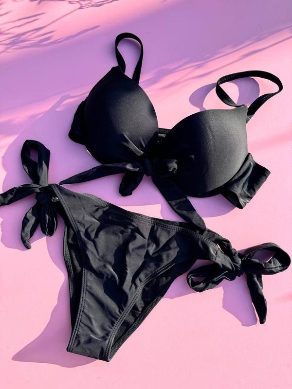 Чорний купальник з пушап, роздільний купальник з пуш ап чашками