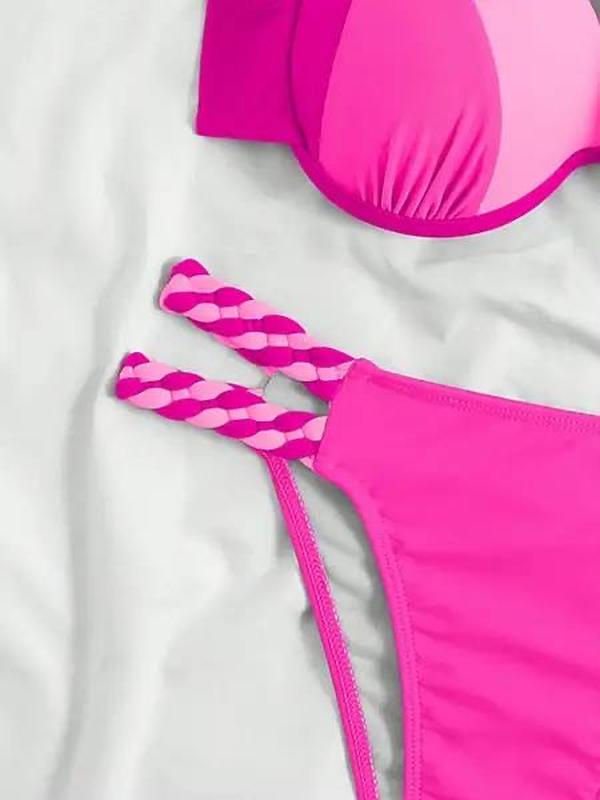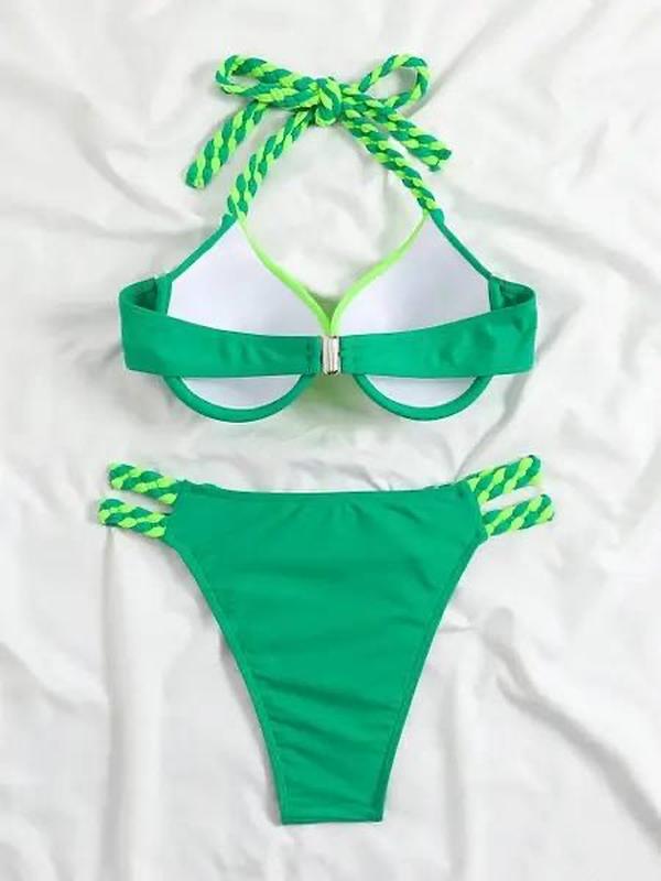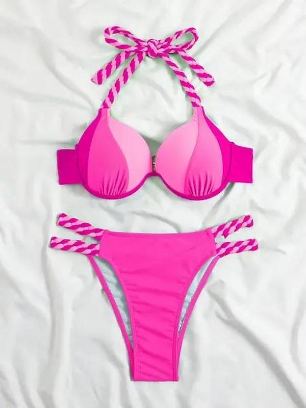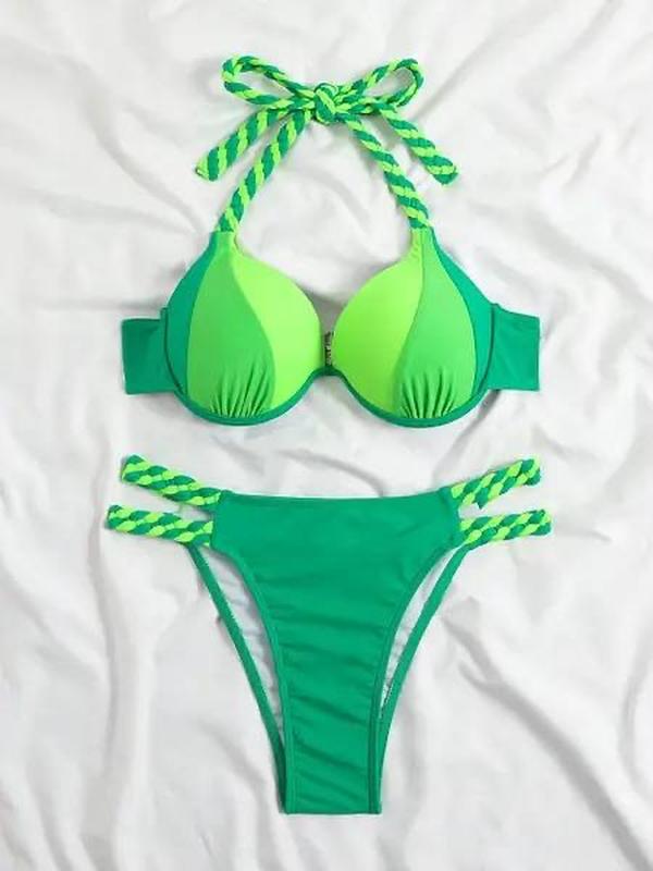 Модний купальник із твердим пушапом. Якісний купальник зі щільної тканини, верх виготовлений у формі ліфа з твердим пушапом на зав'язці. Колір у наявності синій, зелений, рожевий.