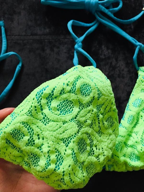 Яскравий бірюзовий ліф з неоново-салатовим мереживом ( мереживо тягнеться) «шторка» , без ущільнювачів і вкладишів