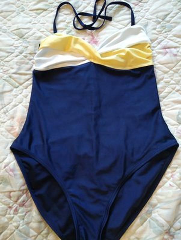 Гарний стильний купальник у басейн або пляж. Колір темно синій насичений, на грудях переплітаються біла і золотисто-жовта підступи, красиво присобран там. Вигідно підкреслює груди, стрункий. Дуже гарний класно виглядає, відмінно тягнеться. Розмір 48-52. Пересилаю. Питання в лічку. Дивіться також інші мої оголошення.