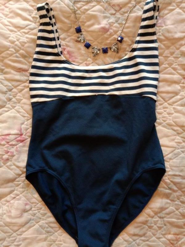 Дуже красивий морський купальник в басейн або на пляж. Красива традиційна морська забарвлення, низ темно синій, білий верх в синю смужку. Вічна морська класика . Дуже ефектно виглядає красиво, краде стегна, підкреслює груди, рельєфна тканина. Відмінний стан і якість. Дефектів немає) Розмір М. Пересилаю. Питання в особистому повідомленні. Дивіться також інші мої оголошення.