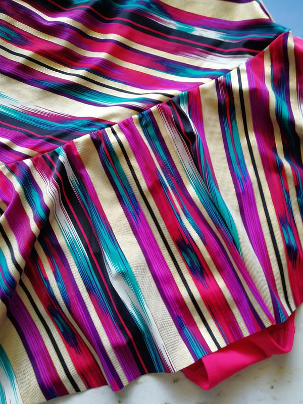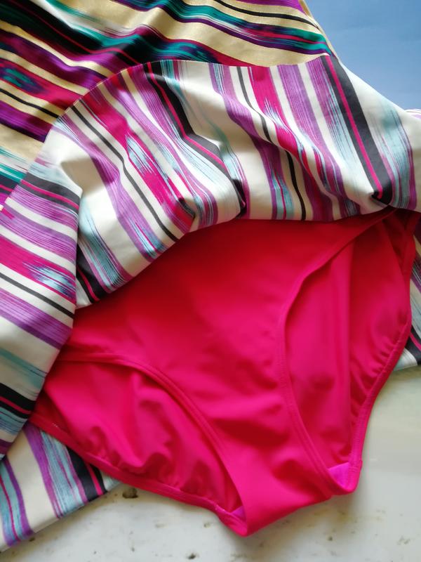 Відмінне купальне плаття! Заміри: пог 41 см, під грудьми 37 см, стегна 43 см, довжина сукні 79 див. Чашка: ширина чашки 14 см, висота 16 см - завмер саме по поролону. Спереду купальник на сіточці закручуванні. Красивий, яскравий купальник.