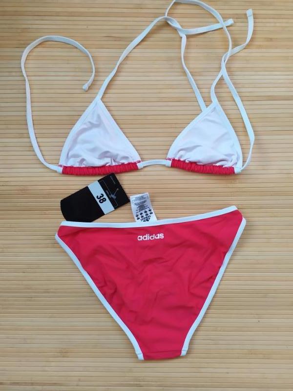 Спортивний купальник роздільний adidas трикутники червоний з білим кантом