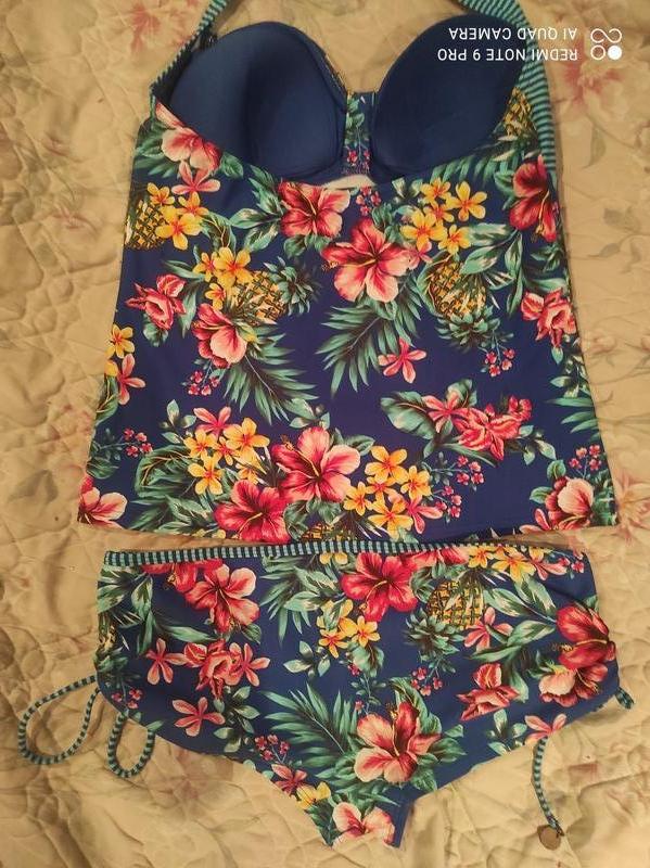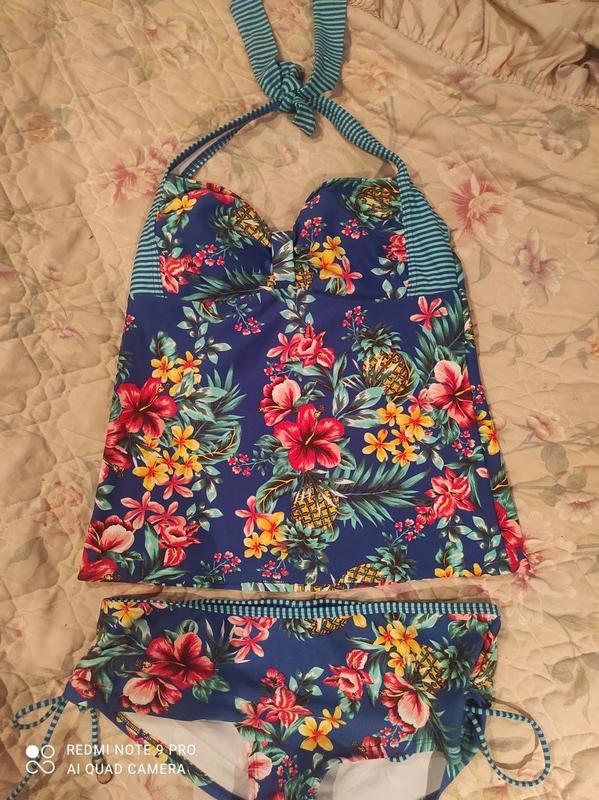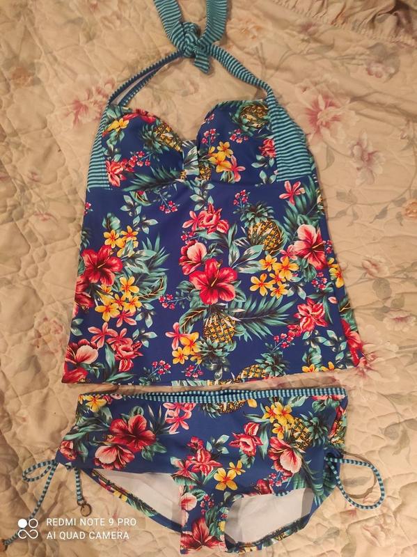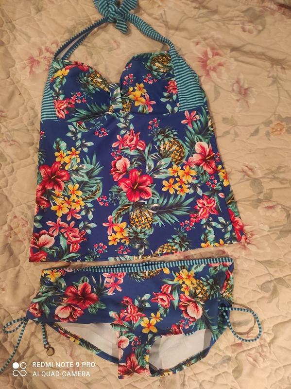 Дуже красивий яскравий купальник танкіні: майка та плавки басейн і пляж. Дуже гарні яскраві кольори. Основний колір синій, далі в яскравий е квіти. Плавки полушортиками. Такий варіант купальника дуже зручний,можна приховати животик і спокійно засмагати, просто подкатив майку. Є завязочки, можна регулювати. Пересилаю. Питання в особистому повідомленні. Дивіться також інші мої оголошення