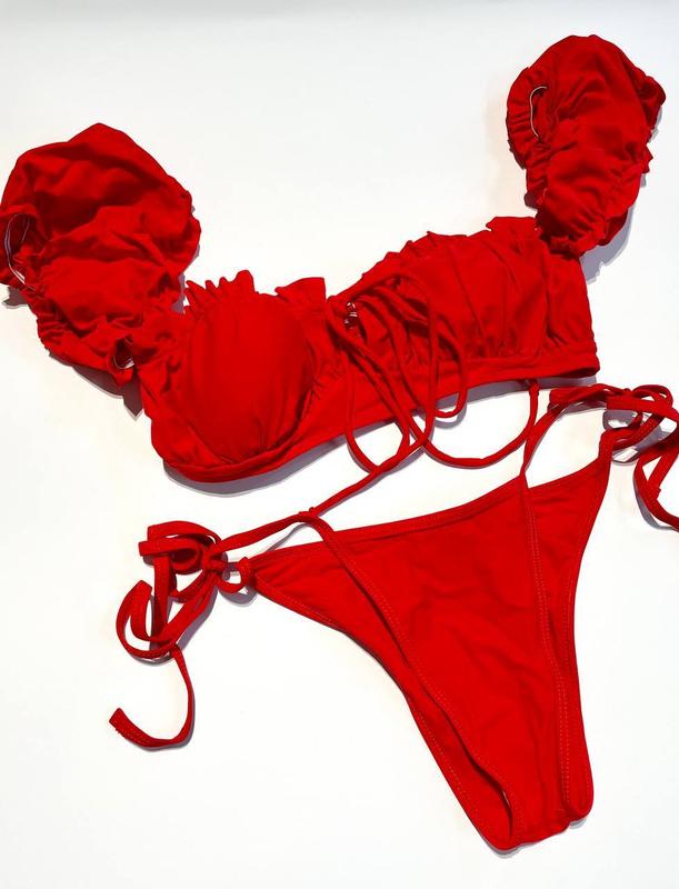 🍓Купальник з ліфом складанням і рукавами-воланами, трусики на зав'язках🍓 ▪️Кольори червоний, чорний, білий ▪️Розмір S і М ❤️ Арт 270