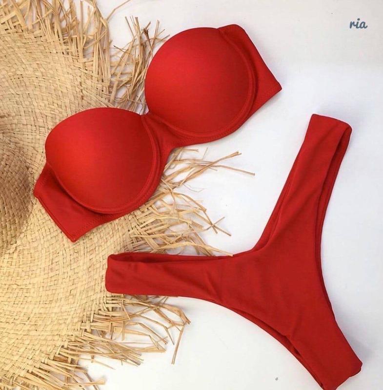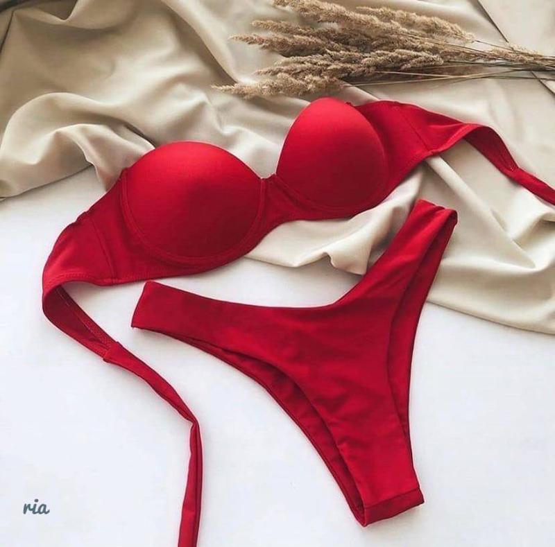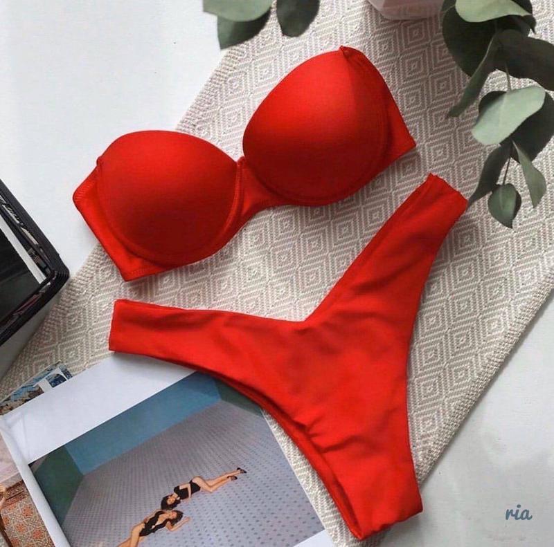 Купальник у червоному кольорі ❤️ • матеріал: біфлекс, щільна чашка, ззаду на зав'язках • без пушапа, бретелей в комплекті немає • розміри: S, M, L ціна 480 грн