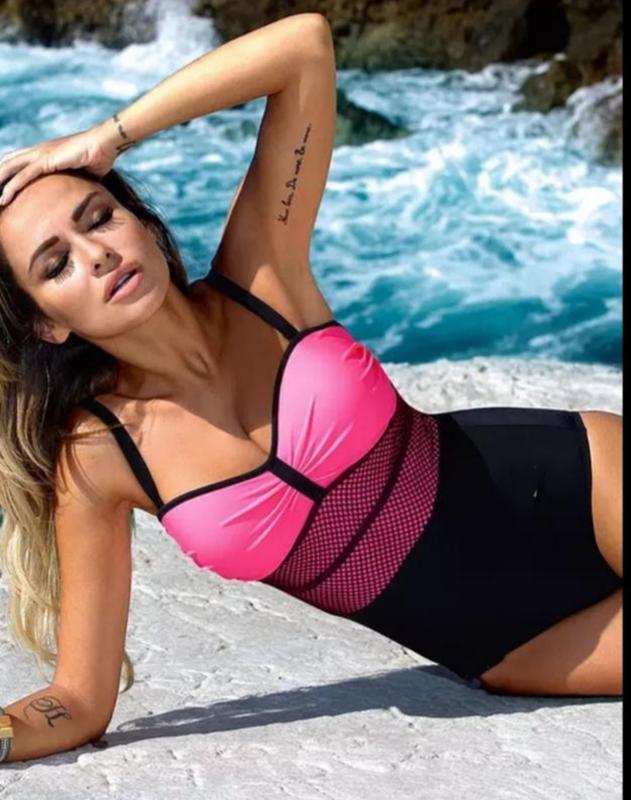 Гарний двоколірний купальник для пляжу і басейну . В бюстгальтері знімні поролонові чашечки, сіточка під грудьми добре підкреслює груди і талію. . Бретельки регулюються. Передня частина купальника на підкладці. Купальники повномірні. розміри: М: обхват грудей 88-94 см обхват стегон 95-98 см підійде на чашечку В/С/D L : обхват грудей 95-100 см обхват стегон 99-107 см підійде на чашечку В/С/D XL: обхват грудей 100-110 см обхват стегон 108 - 115 смподойдет на чашечку В/С/D/E У оголошень представлені фото покупців.