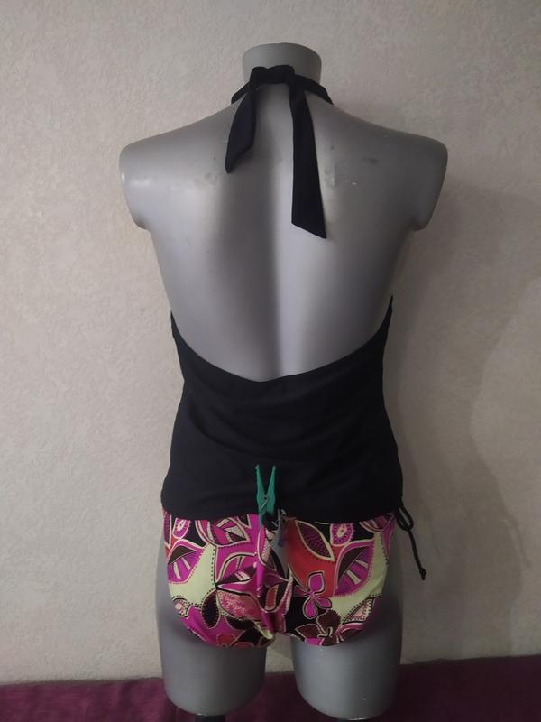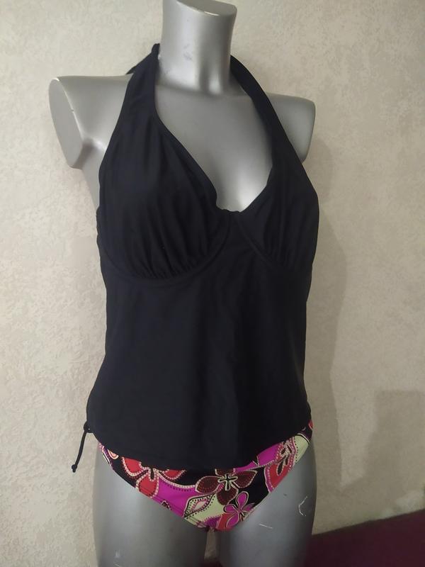 Пропоную Вам брендове білизна! Стильний, якісний, красивий купальник танкіні з стрейч-поліаміду. Чашки на підкладці, на кісточках, зав'язується на шиї. Дуже красива стильна забарвлення З-за спалаху колір точно передати не вдалося, в реальності набагато яскравіше. Плавки Femilet комфортної посадки, в тон верху, попереду на підкладці. Виглядає дуже стильно! Чудово сидить на фігурці! Красиво виділена лінія декольте! Річ нова, з паперовою етикеткою! розмір йде майка – UK-38G/EUR-85G, йде на наш розмір 48(L) Розмір плавок вказаний UK-18/EUR-44, йде на наш 50(XL) Довжина плавок в поясі в складеному і не розтягнутому вигляді - 44 см, тягнуться, висота посадки 27 см, під грудьми - 38 см, тягнеться до 44 см ПОБІДИ - 41 см, тягнеться до 50 см Довжина топа по боковому шву - 31 див НОВИЙ!!!