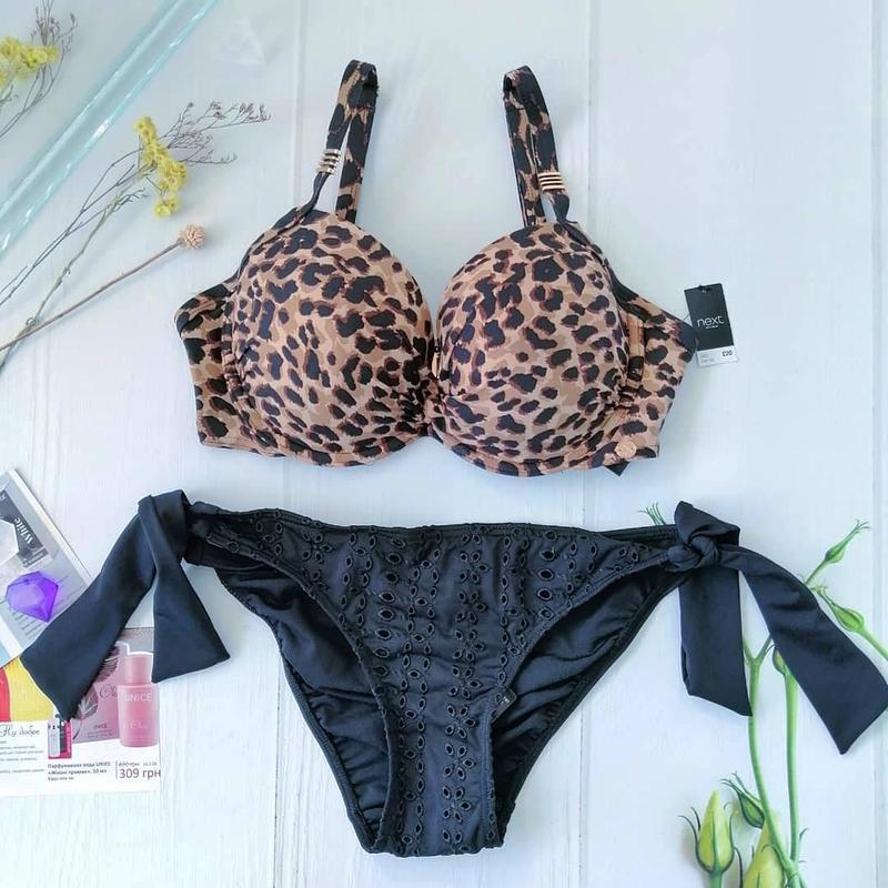 Шикарний купальник Next, леопардовий верх, чорні труси🔥 Бренд: 🇬🇧 Склад: нейлон, поліамід, еластан _______________________ ♀️купальник жіночий 💚 дл.боягуз.: 22 см, шир.боягуз.: 36 см, ліф: 33 см, вис.чаш.: 15 см, шир.чаш.: 15 см