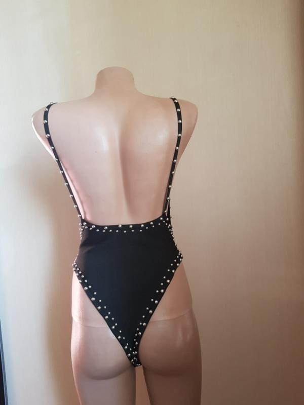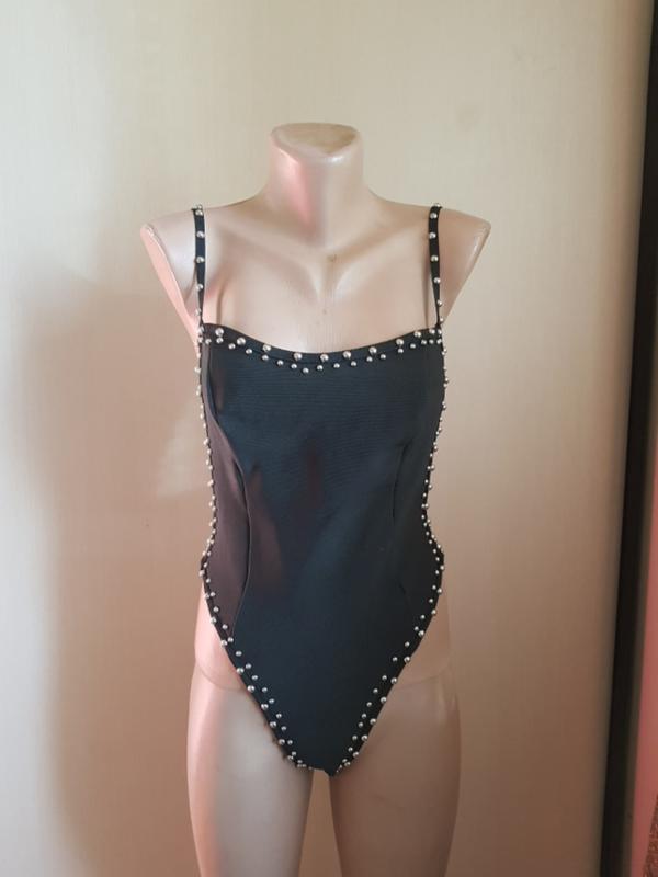 сток новий Новий. Чорного кольору, прикрашений метал.намистинами(90% поліестер, 10% еластан). Тонкі брители-гумки,довжина 75см-80см(довжина з брителями) ПОГ 44см-46см, відкрита спина,ПОБІДИ 43см-46см. Колір: однотонний Колір: чорний Розмір (INT-RU-EU-USA): XS - 42 - 36 - 8 Низ: бікіні Тип купальника: відрядний Рік виробництва: 2010 і новіше