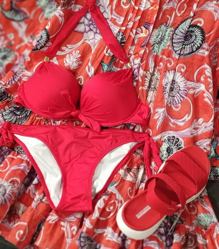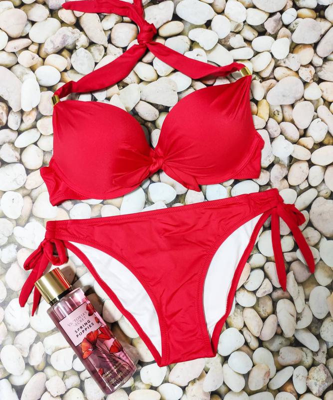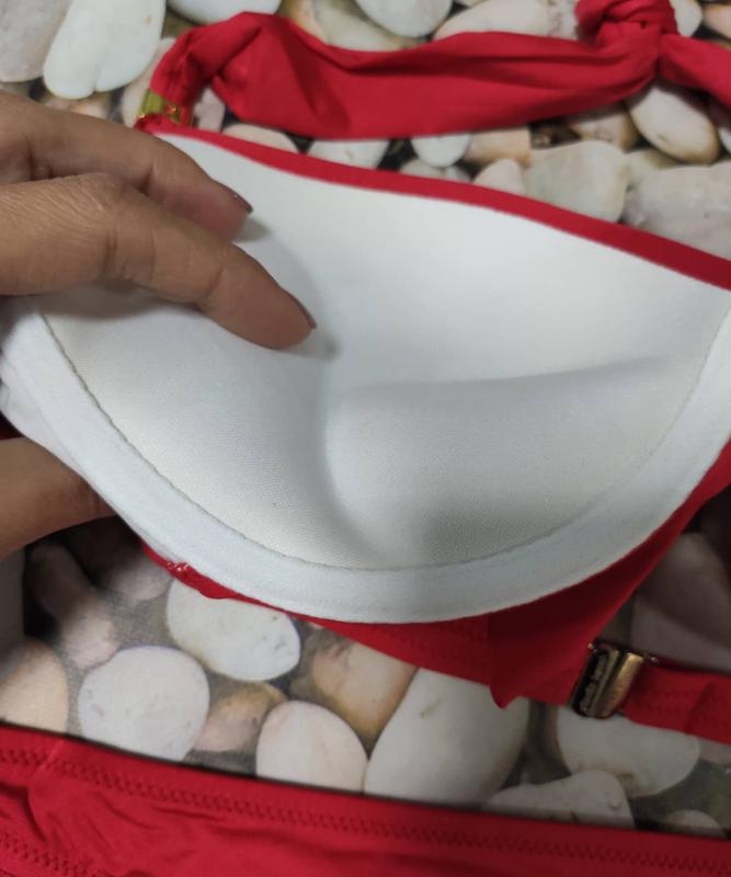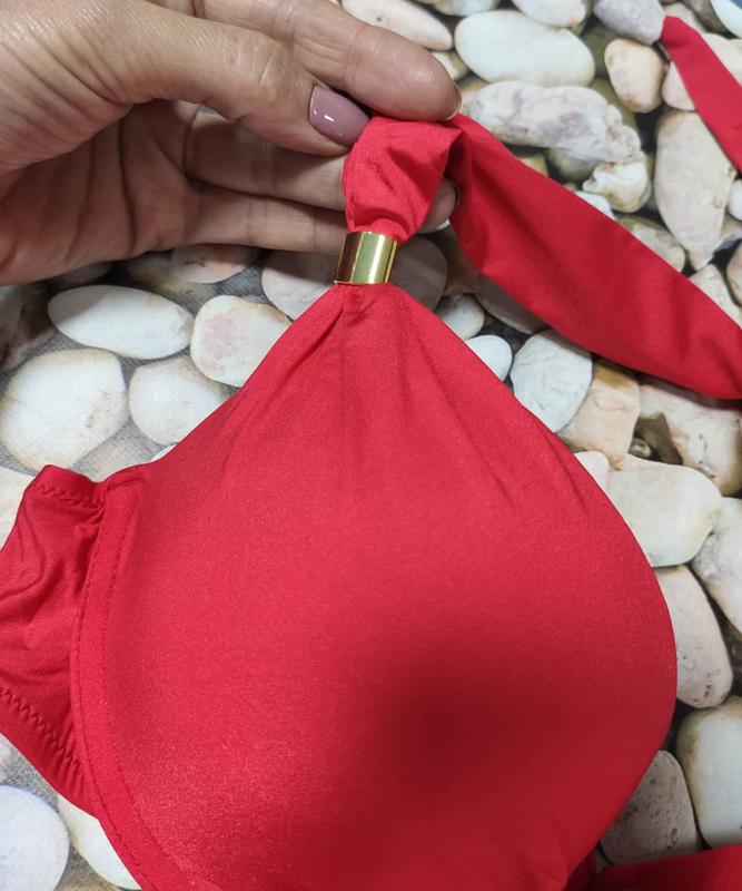 На фото 36р. - плавки середня посадка,на зав'язках,повністю на підкладці - ліф форма чашки,відмінно сідає по грудях,щільно прилягає і приподнимаен груди, за рахунок пуш ап збільшує +1.5-2 розміру.