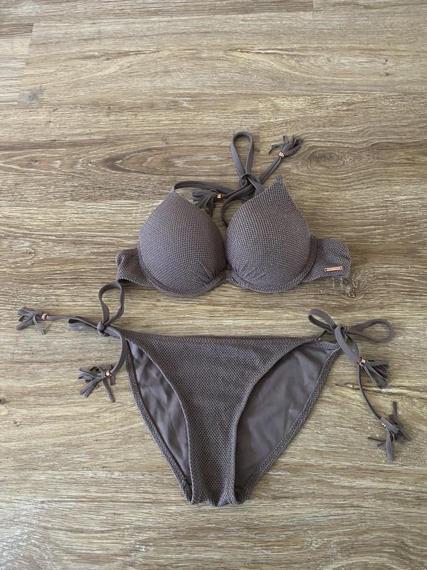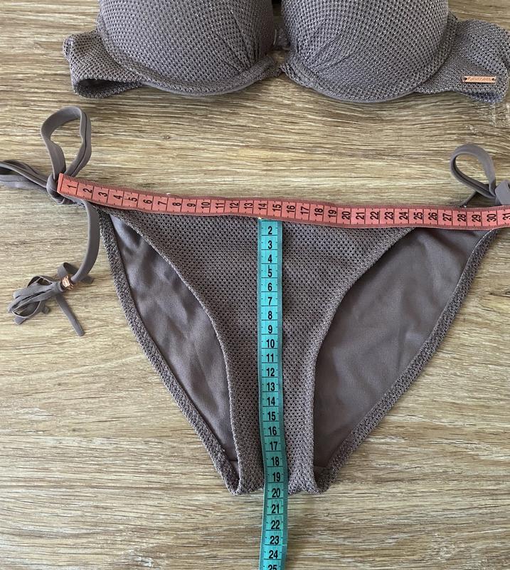 Шикарний, купальник, з супер, пушапом. Дуже зручний, на кожен день, на пляж. Красиво виглядає на фігурі. Заміри чашки бюстгальтера: ширина 15 см довжина 12 см. Розмір вказано: 70В. Підходить 70С. Брендовоі фірми: Censored. Трусиків вказаний розмір: S. За рахунок, завязачек розмір можна регулювати. Склад: 87% поліамід , 5% еластину, 8% метал.