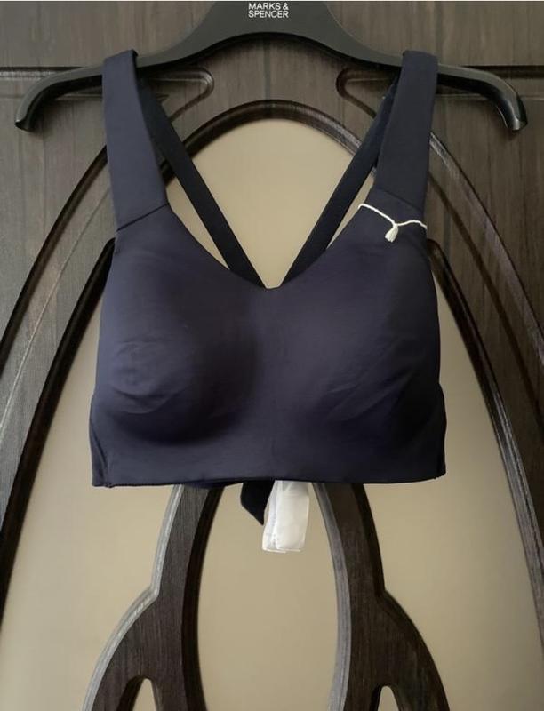 Шикарний, базовий, бюстгальтер, топ, для спорту, без кісточок, темно синього кольору . Дуже зручний на кожен день, красиво виглядає на грудях. Брендовоі фірми: Crane. Заміри чашки бюстгальтера: ширина 18 см. довжина 16 см. Розмір вказано: S/36/38/75C. Склад : 85% полістер, 15% еластину. В обхваті, в спокійному стані 69 см. тянеться до 88 см.