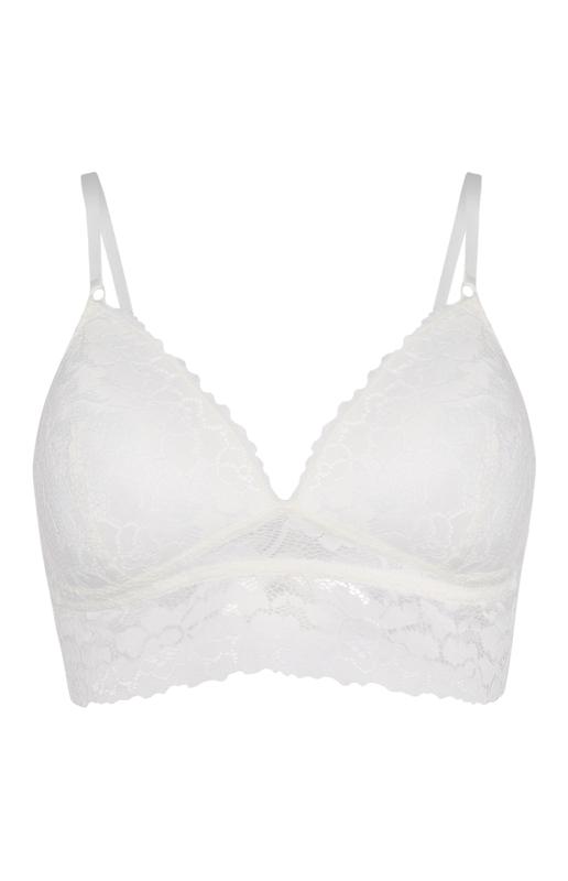 Модний бралет покритий великим квітковим гіпюровим візерунком незамінного універсального білого кольору, що підійде під будь-який низ кольору та фасону.