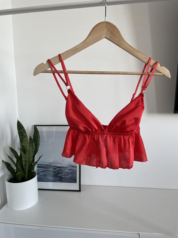 Червоний топ бра красивий бюстгалтер бралет атласний з рюшами з оборкою