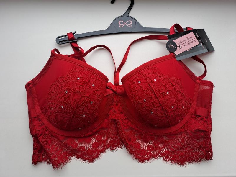 Ущільнені чашки без push-up на кісточках, прикрашені дрібними стразами.