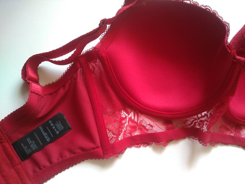 Формованные чашечки покрыты фактурным кружевом с цветочным узором в сексуальный пламенный цвет.