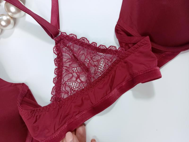 Предлагаю очень красивый нежнейший бюстгальтер из тончайшей маслянистой микрофибры, изящного кружева и бархатной тесьмы цвета бургунди с застежкой спереди!
