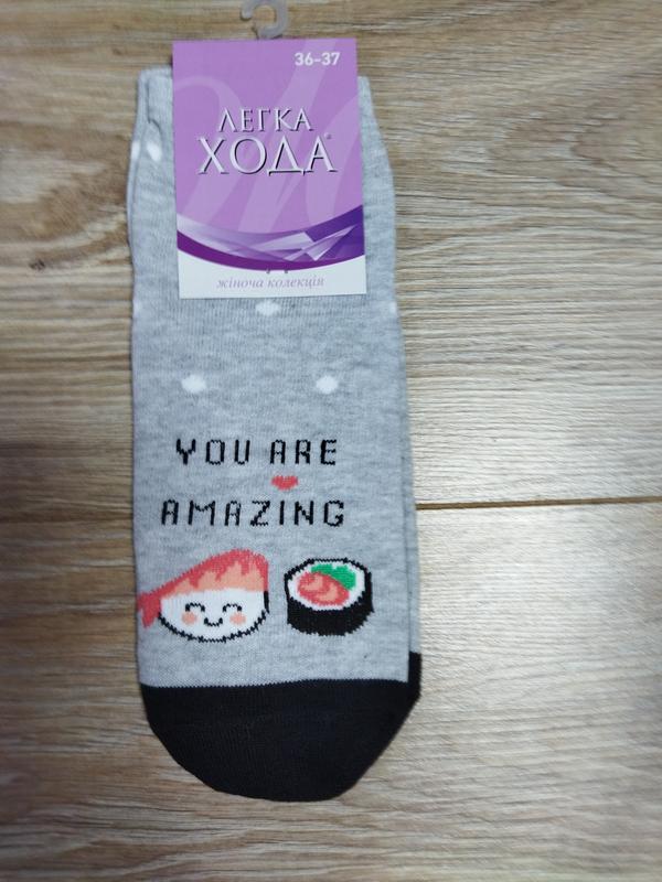 Шкарпетки жіночі тм Легка хода модель 5373 з низькою пагонкой ( холявкой). Склад: 75% бавовна, 20% поліестер, 8% віскоза, 3% поліпропілен, 2% еластан. При багатьох праннях не міняють колір і форму, довго носяться. Ніжки в них не потіють і не пахнуть. Розмір 36-37, 38-39. Такі ж шкарпетки (схожі моделі) є з принтом суші, пандою і енотиком. Заходьте в мій магазинчик, там є багато цікавих якісних товарів: нижня білизна, шкарпетки, колготки, кофтинки, штанці, шапочки, тапочки, текстильні вироби для дому, термобілизна і багато що інше. Буду рада бачити вас у себе в гостях. Підписуйтесь на мої оновлення. Висилаю новою поштою та укрпоштою, оплата на карту Приватбанку і безпечна оплата на Шафе. Пишіть всім відповім.