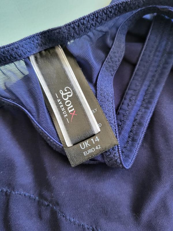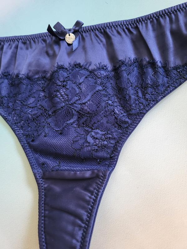 Гарні трусики стрінги Boux з атласного страйку з гіпюровою вставкою.Розмір на бірці вказано EURO 42, UK 14.За необхідності зроблю заміри