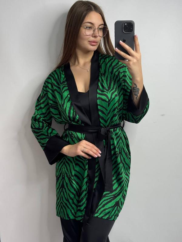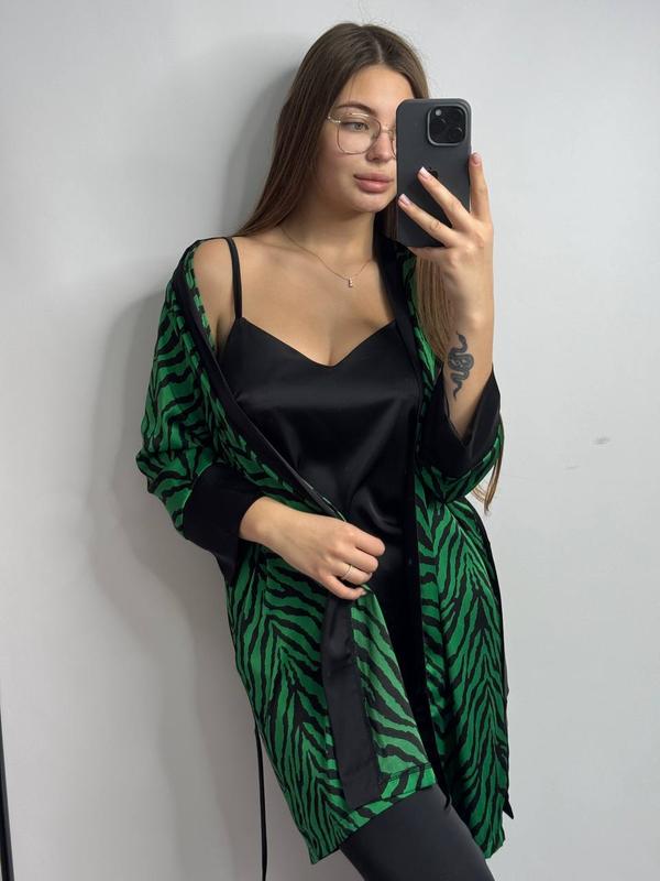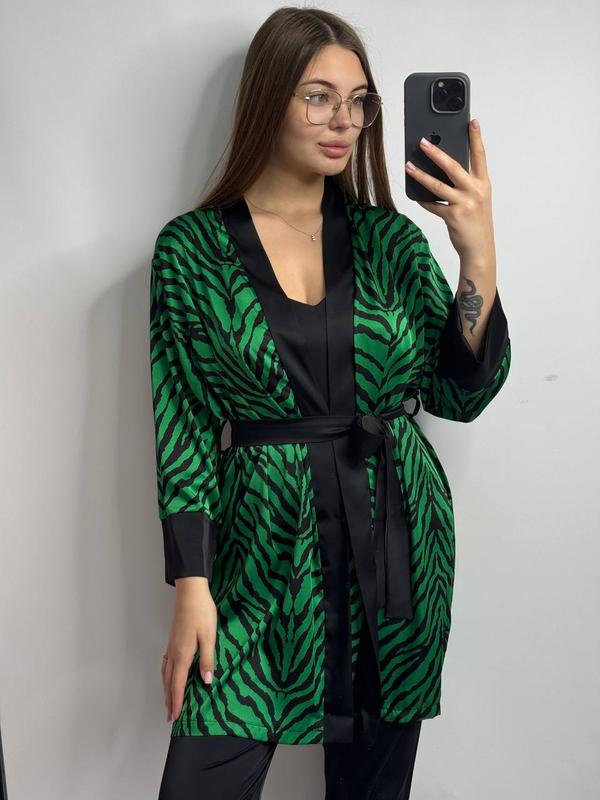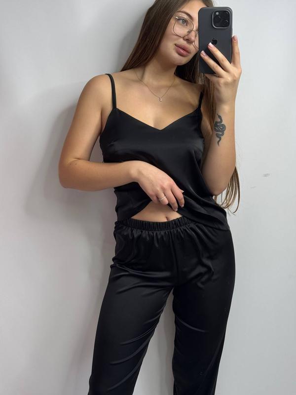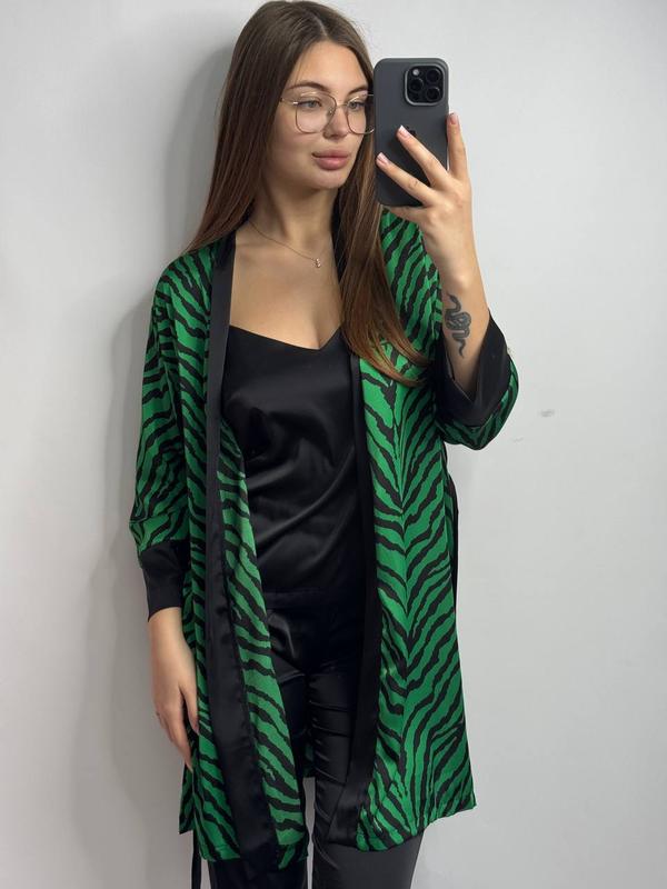 Майка на брельках, які регулюються. Штани високої посадки. Халат на бретельках