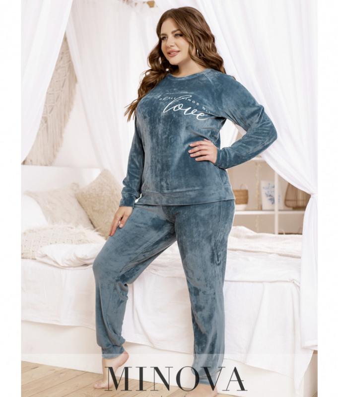 МАТЕРІАЛ: велюр трикотаж РОЗТЯЖНІСТЬ: Сильна розтяжність (>5см) 🌈Колір: Джинс, Темно-зелений, Бордовий, Бузковий, Капучіно, Синій. М'яка м'який і зручний домашній костюм, виконаний з шовковистого велюру, дозволить вам відчувати себе максимально комфортно і привабливо. У комплект входять однотонні штани-джогери на резинці з кишенями і манжетами, а також лаконічний світшот в тон з декоративним принтом і рукавами-реглан, доповненими манжетами. УВАГА! Згідно з постановою Кабінету міністрів України від 19.03.1994 №172 «Про реалізацію окремих позицій» Закону України «Про захист прав споживачів», ця модель поверненню та обміну НЕ ПІДЛЯГАЄ!
