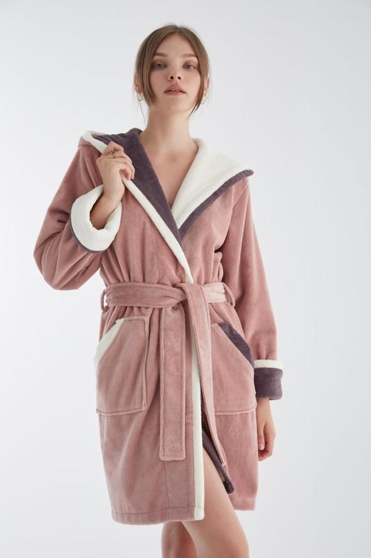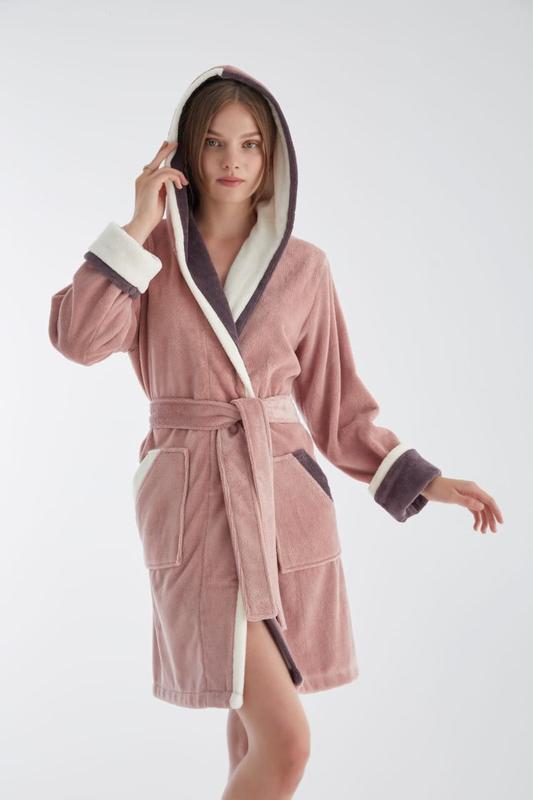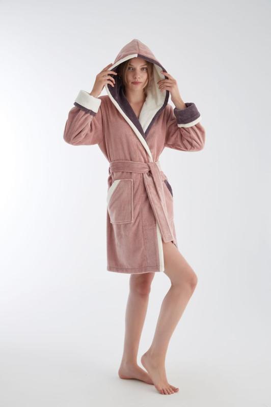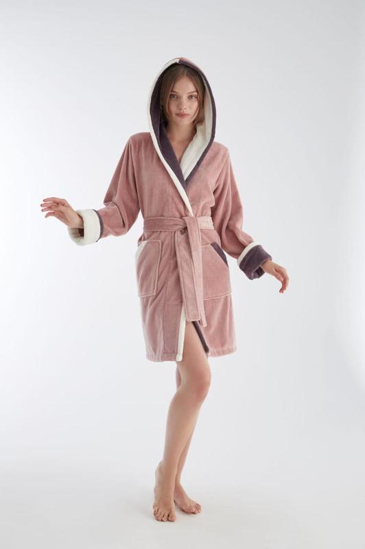 короткий халат із кишенями Пудровий гарний натуральний теплий Nusa