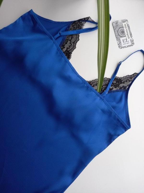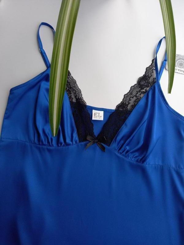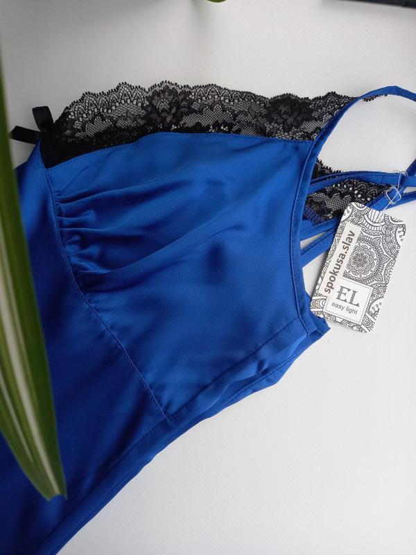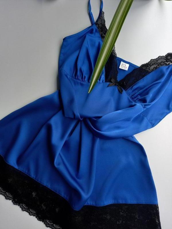 🍎Елегантний комплект з нічної сорочки та пеньюару приголомшливого кольору ультрамарин декорований витонченим мереживом з квітковим візерунком та ефектом тіні.