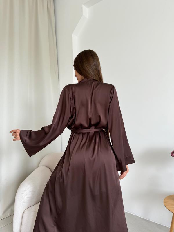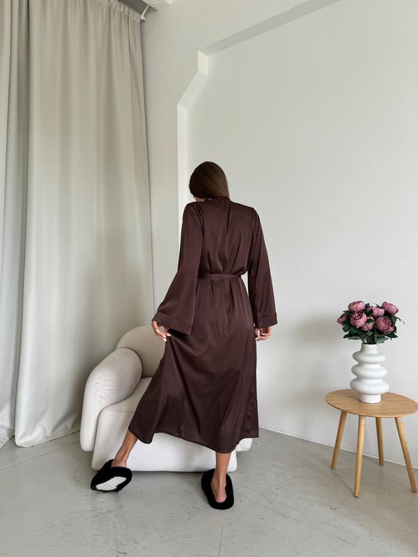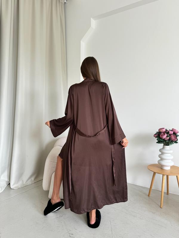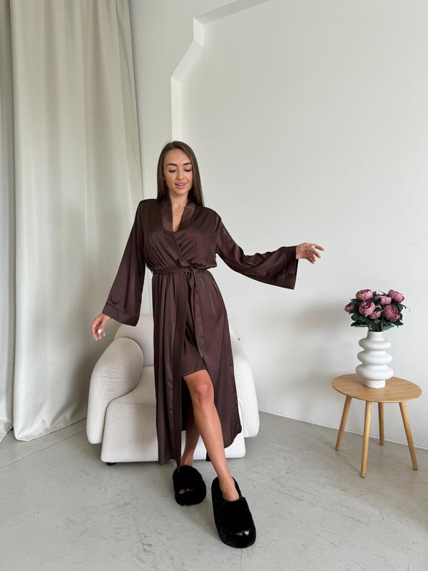 Вишуканий шовковий комплект для дому. шовковий довгий халат та сорочка . вишуканий...