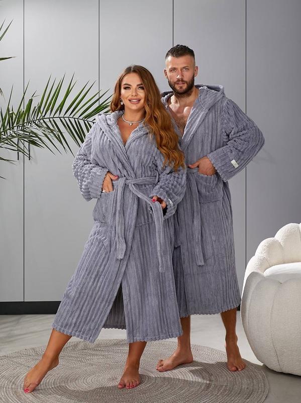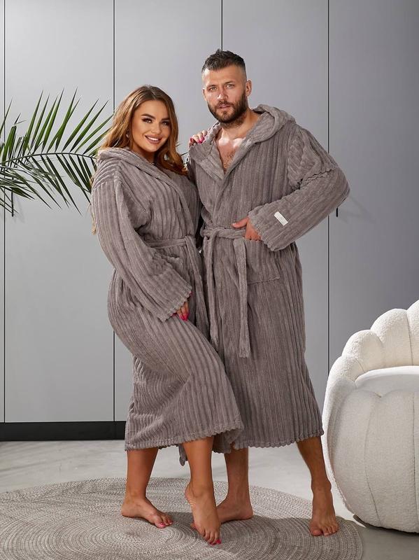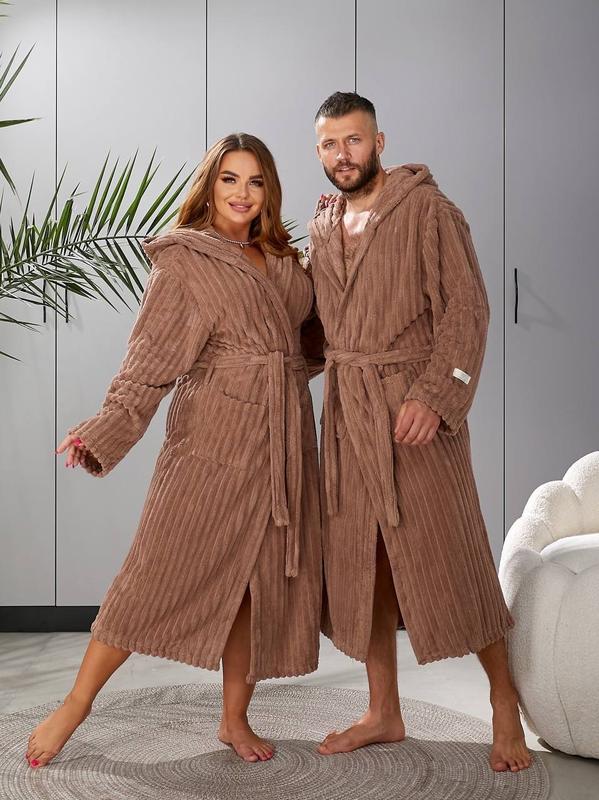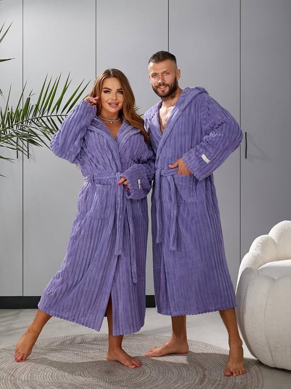 ✨Халат з капюшоном,широким поясом,який дозволяє легко регулювати посадку і глибокими кишенями,має приємну на дотик текстуру з вираженим рельєфним візерунком.Розкішний халат з мікрофібри створений для тих,хто цінує комфорт і стиль.