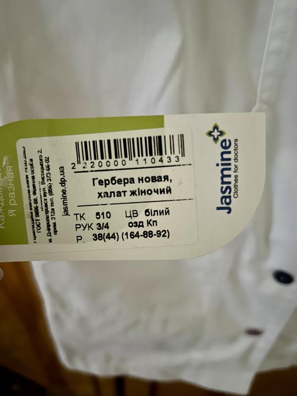 Халат медичний Jasmine, новий, розмір 38(44), підійде на xs/s; рукав 3/4, матеріал котон 100%; Полуобхват стегон 48,5 см, талія 41 см, ПОГ 42 см