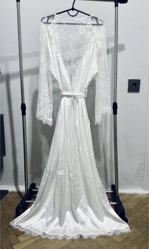 Довгий білий атласний халат розміру Xl Невеликий недолік вказано на фото Одягала один раз на ранок нареченої Заміри Груди 48 Рукав 60 Довжина 148 Відправка Новою,Укр поштою та Rozetka