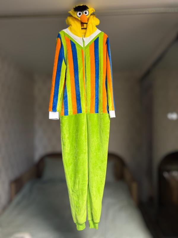 Абсолютно новий, сток. Дуже тепленька та мʼяка піжама кінгурумі для дому та сну від Primark з персонажем Sezame Street. Зручна застібка блискавка, є бічні кишені, пухнастий фліс, трикотажні манжети, капюшон з персонажем Маппет шоу. Розмір XS-S. Заміри: довжина від плеча 157 см, висота по центру 82 см, рукав 64 см, штани по внутрішньому шву 71 см, плечи 45 см, по груди 49 см. Фото товару реальні, зроблені мною.