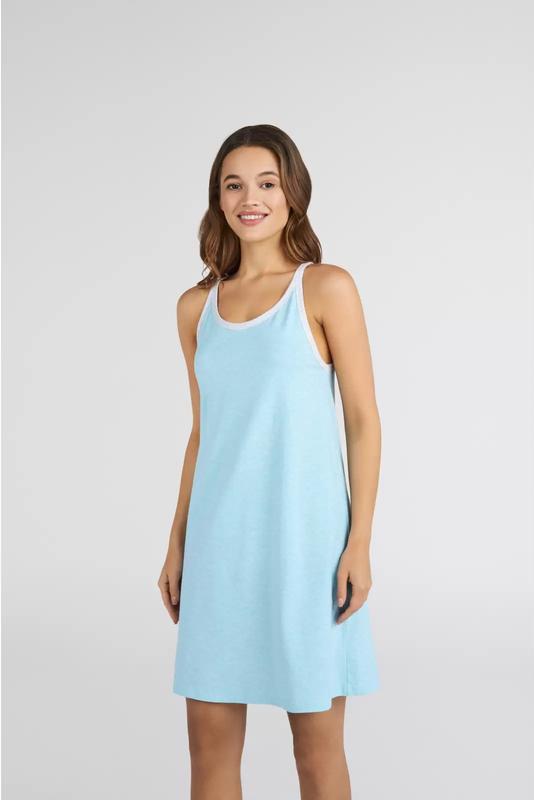 Нічна сорочка вільного крою, на тонкій бретелі сірого кольору, довжиною вище колін.