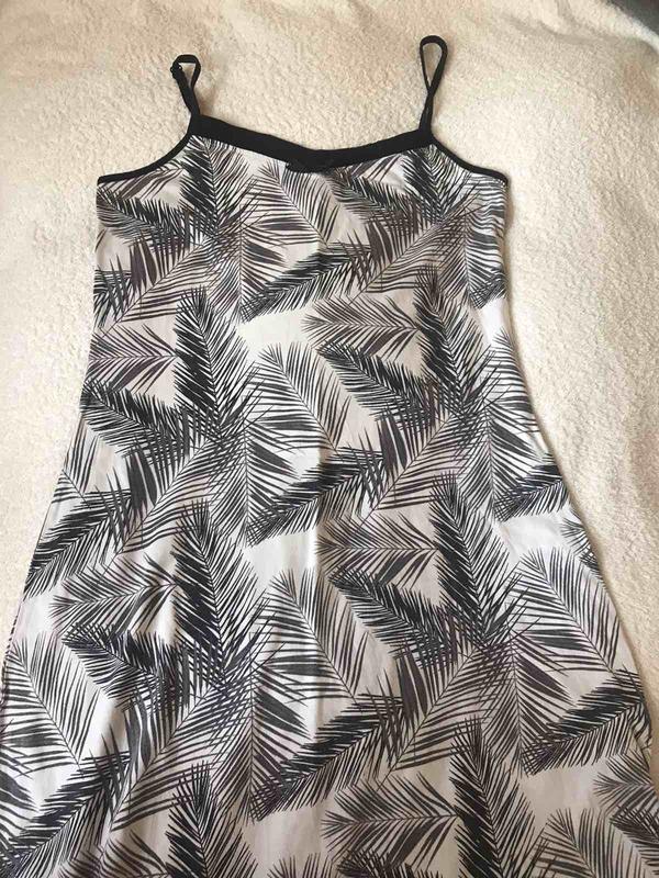 Подовжена нічна сорочка з ніжним принтом; Довжина 120 см приталений крій; бавовняне трикотажне полотно добре пропускає повітря й вбирає вологу, не подразнює чутливу шкіру; тонкі регульовані бретелі; без застібок.