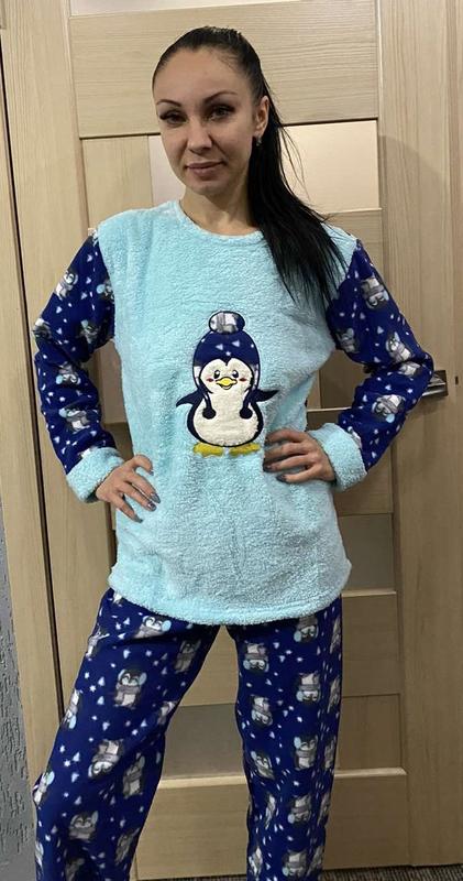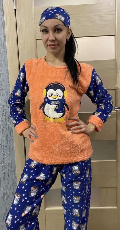 Очень тёплая женская пижама с маской для сна .Основа флисс - перёд рваная