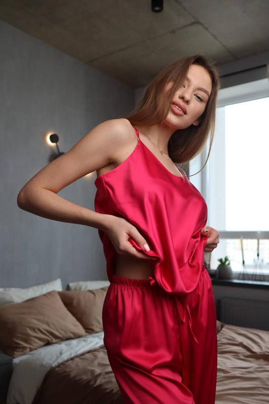 Шовкова піжамка майка та штани, ніжна піжама шовк маєчка та штанці