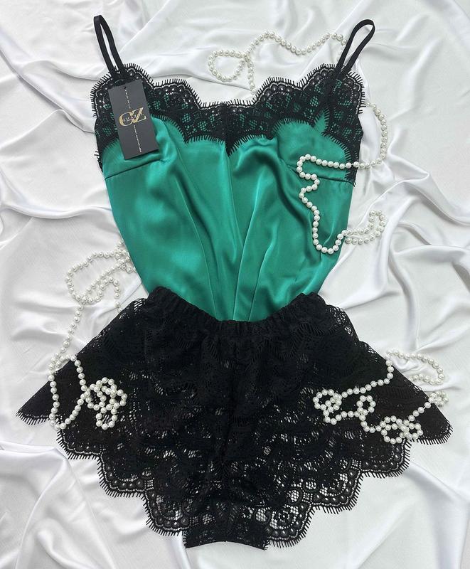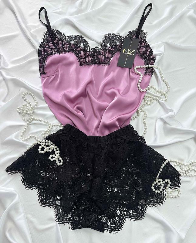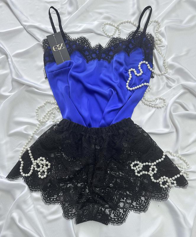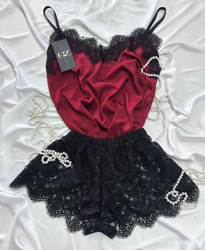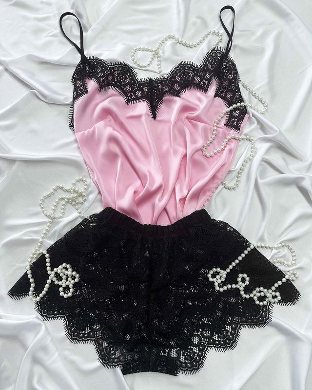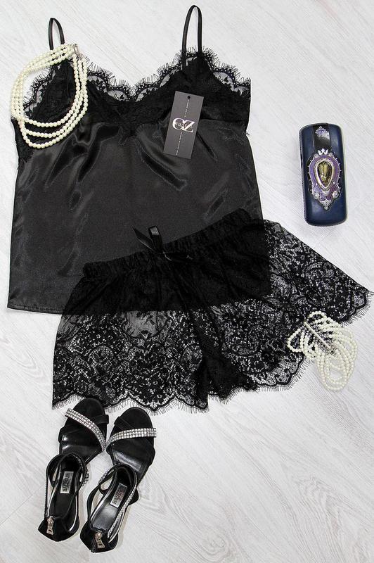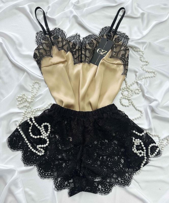 Романтичний жіночий комплект шовкова майка" з шортами з французького мережива